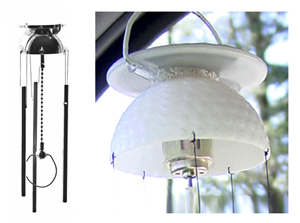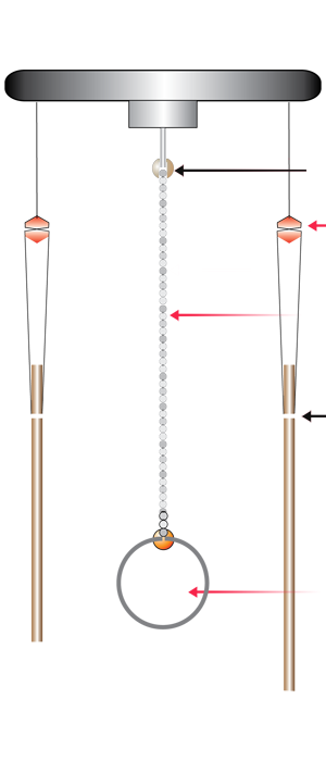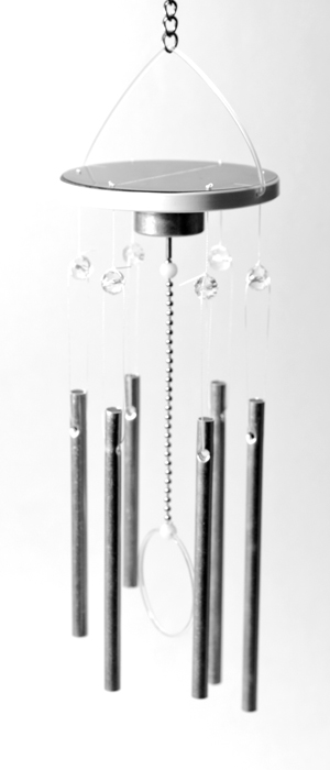 A loop type striker is attached on the end of the ball chain. A softer sounding plastic filament for indoor use or and metal wire for more distinct sound for outdoors.