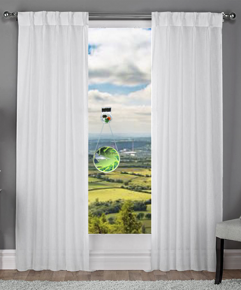 Attached to a window with a suction cup in direct sunlight.